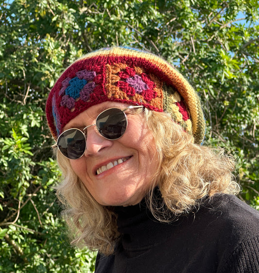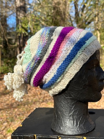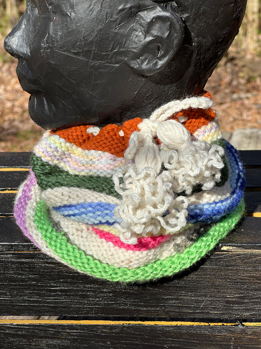 Dark Hued Rainbow Crochet & Knit Wool Beanie Hat Toboggan