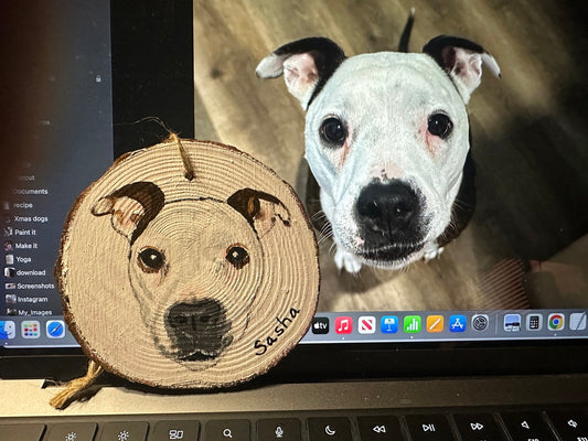 4 inch Hand painted Pet Portrait Ornament on wood slice